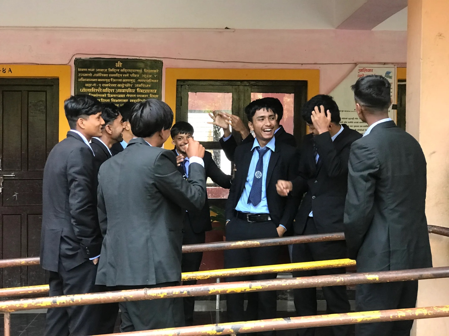 It’s early morning when a small drone hums above lines of pupils, from little children to young adults, all dressed in jogging suits or school uniforms, at the SHREE DHAULAGIRI DEAF (Res.) SECONDARY & TECs. SCHOOL for the Deaf and Hard-of-Hearing in Baglung. The atmosphere is excited. A Dutch video maker is filming today to document the proceedings in this environment, where listening to one another is taking on new forms.