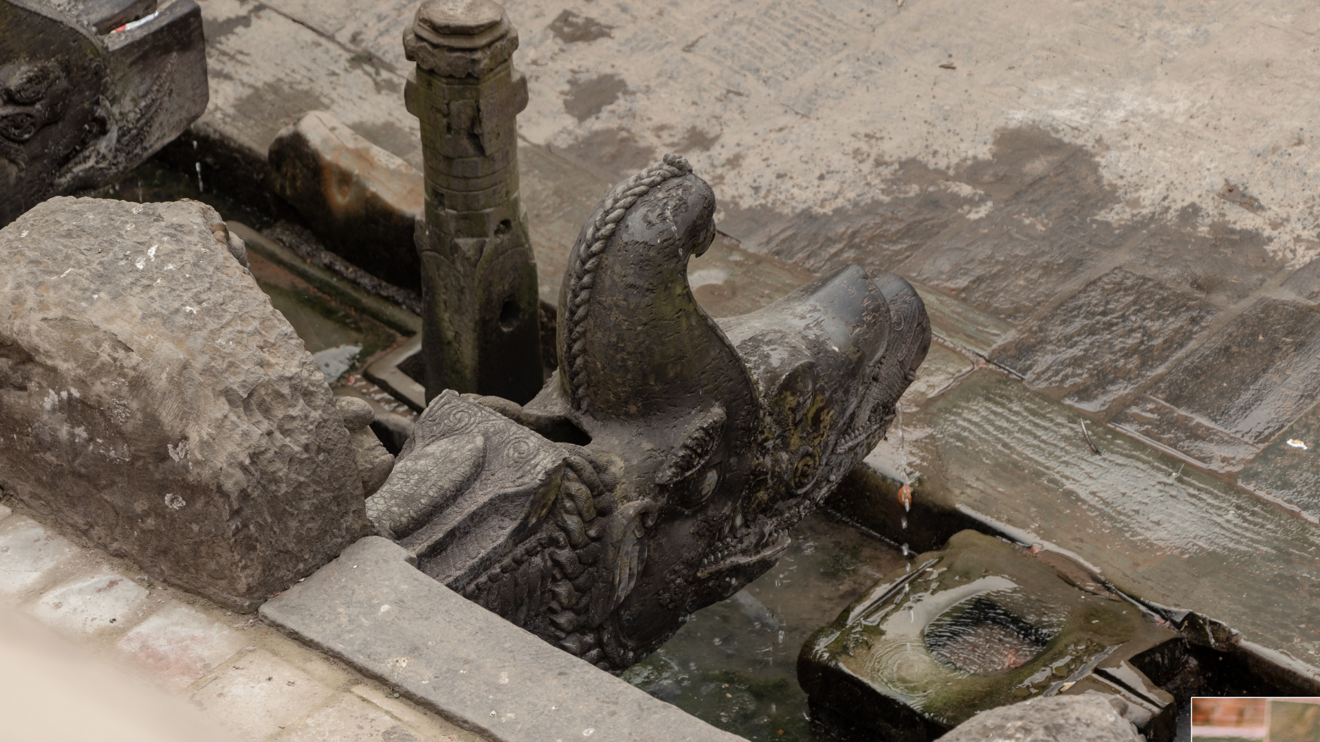 Walking through the older quarters of town, one encounters numerous waterspouts crafted since the Middle Ages. They feature intricate carvings that embody the history, culture and craftmanship of the Kathmandu Valley.
