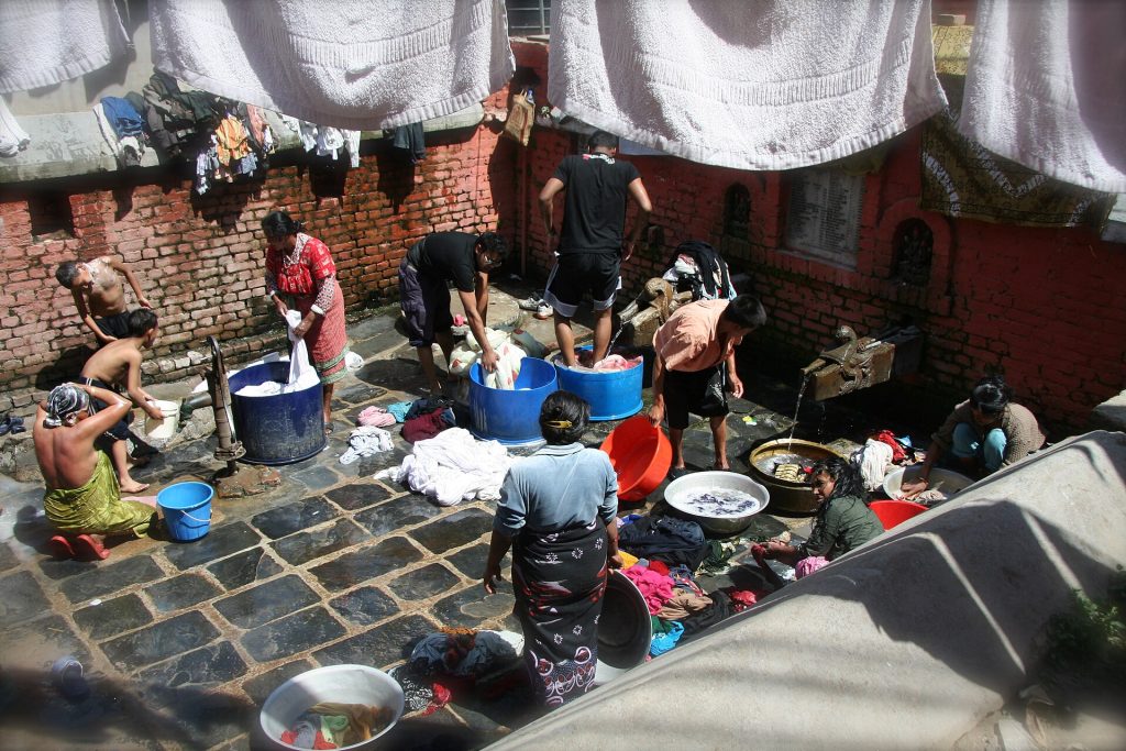 People doing laundry in a Hiti somewhere in Kathmandu. Photo: Tom Booth/Wikimedia Commons